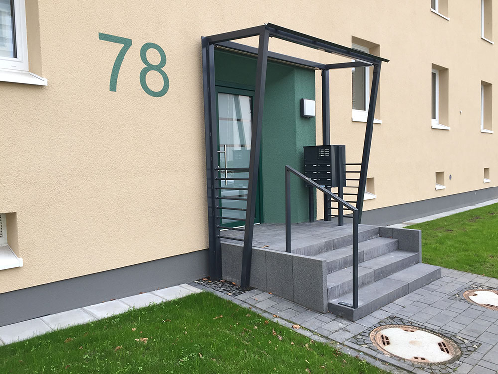 Überdachungen aus Stahl mit pulverbeschichteter Oberfläche sind langlebig und witterungsbeständig. Wir fertigen Vordächer für Ihren Eingangsbereich und hochwertige Dachkonstruktionen zur Beschattung und Bedachung Ihrer Terrasse oder des Balkons.
